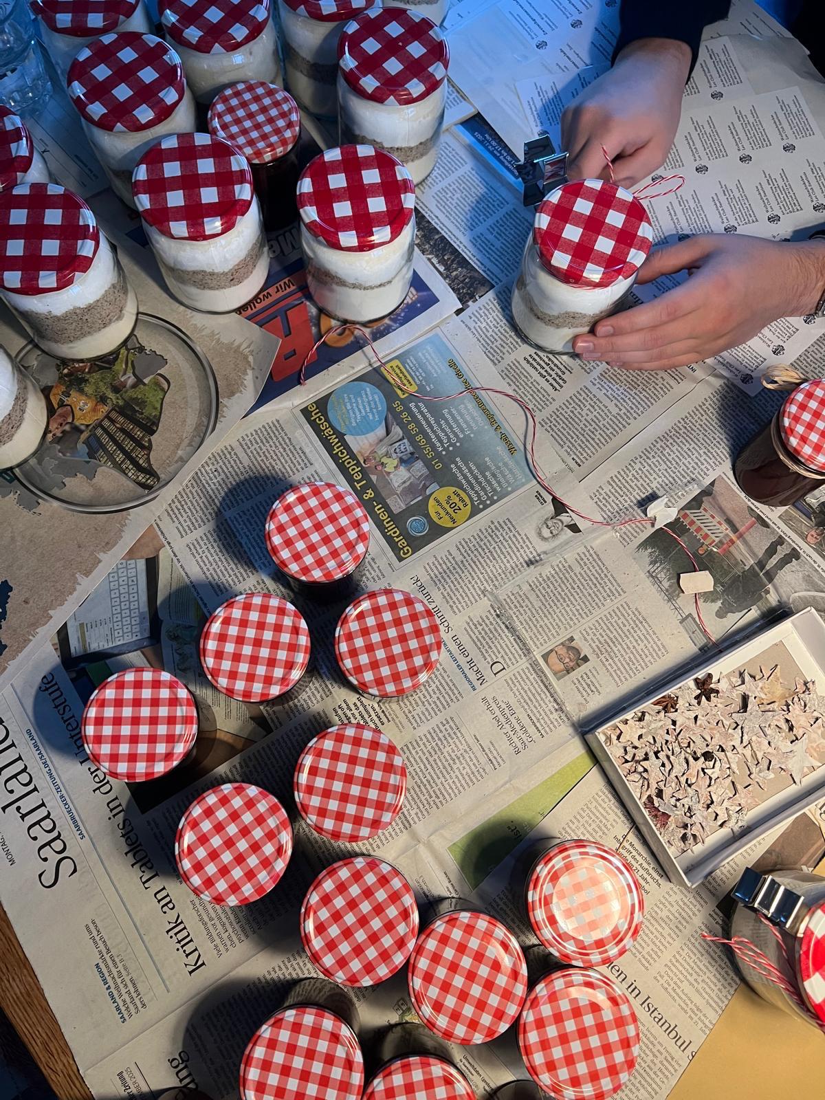 Wir Leos haben Weihnachts-Backmischungen und Marmeladen hergestellt, abgefüllt und dekoriert, nicht für uns, sondern für Menschen, die Schutz brauchen.